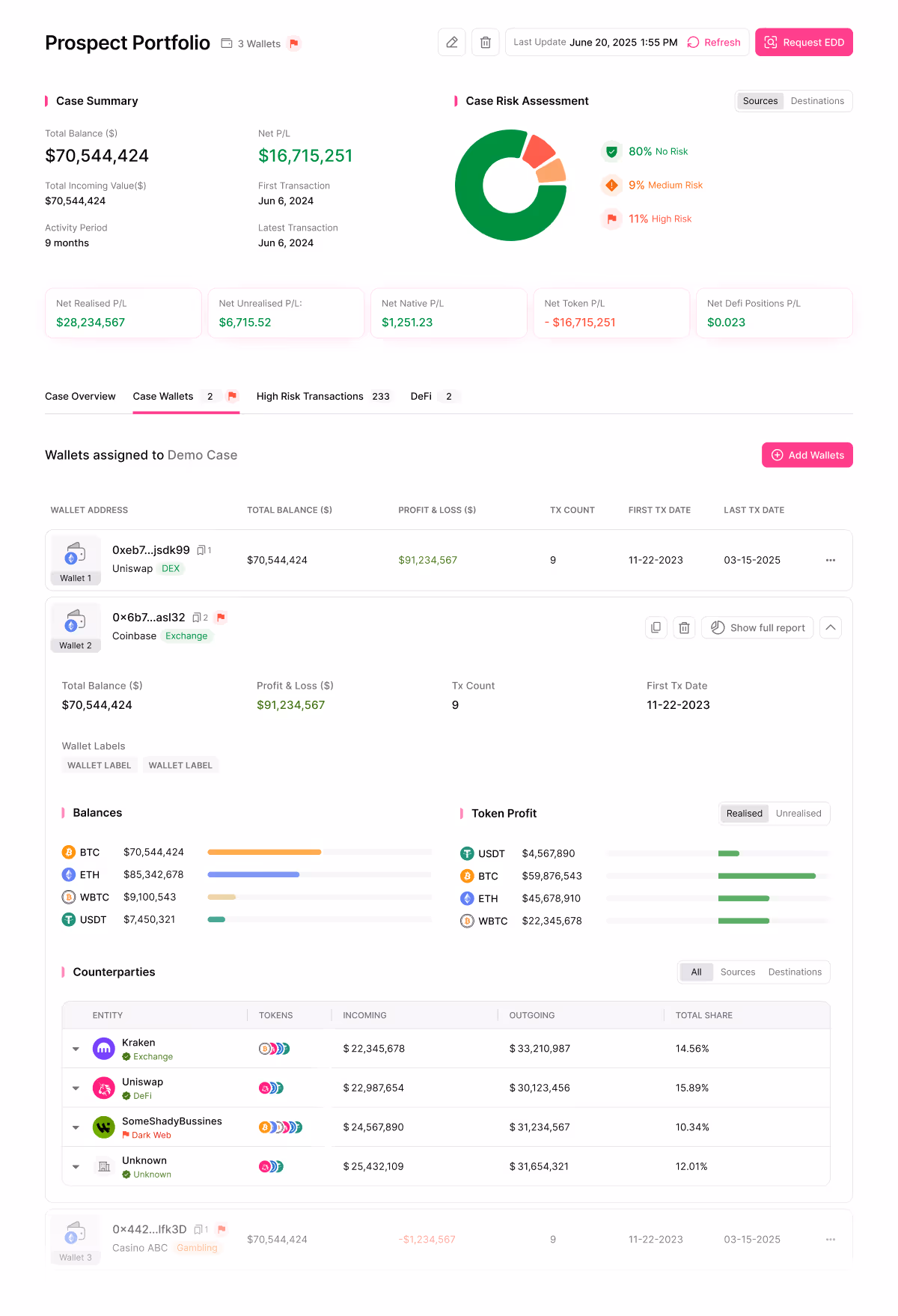 In-depth source of wealth & financial crime analysis on crypto prospects