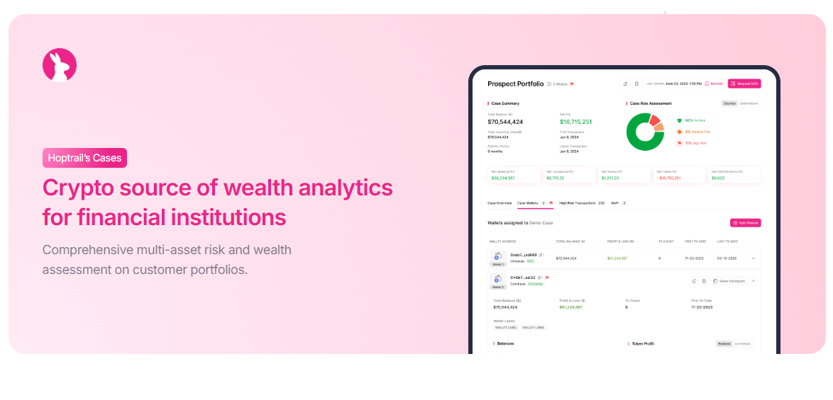 This wasn't a unique problem – I soon found it was a systematic failure affecting thousands of crypto investors and the banks trying to serve them. That frustrating experience led me to found Hoptrail, and today I'm excited to share the next chapter of our journey: the launch of Cases, our comprehensive source of wealth analytics platform designed specifically for compliance teams.